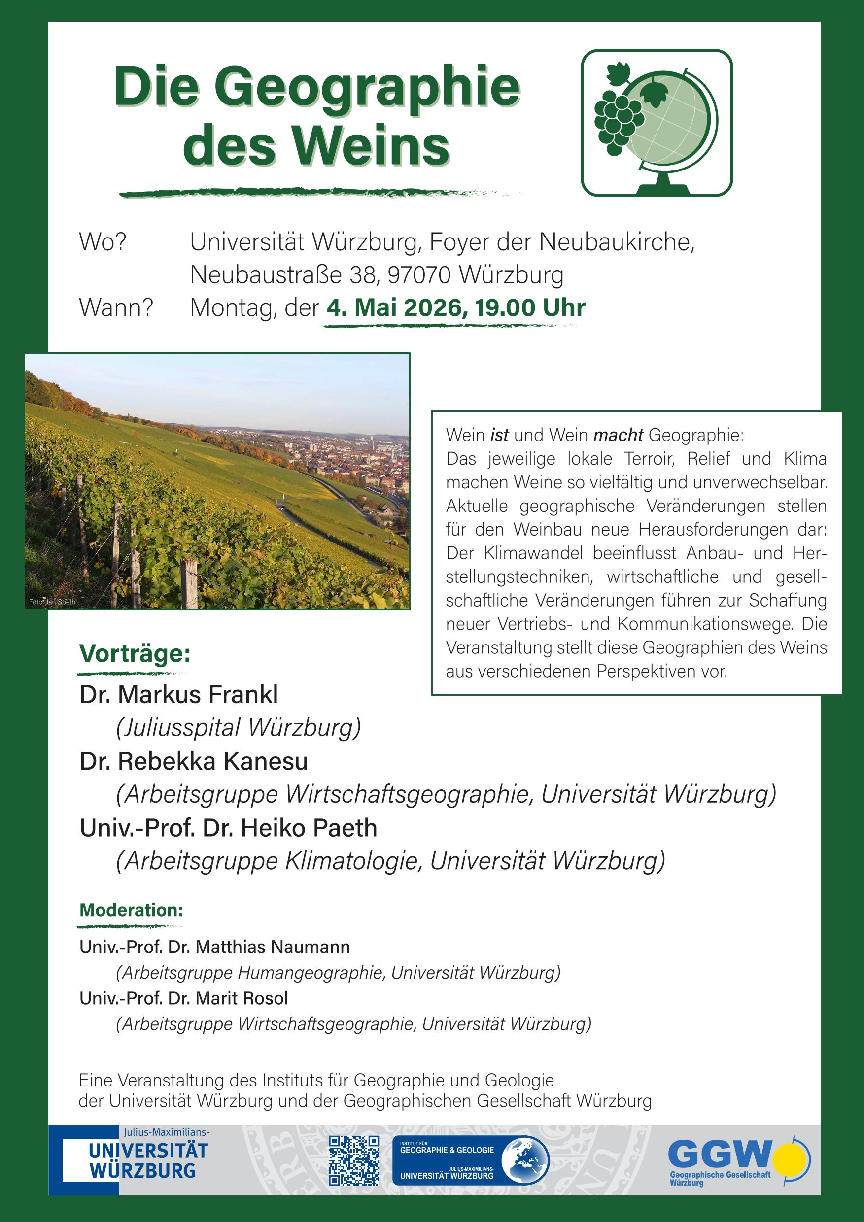 Aktuelles Universität Würzburg: Die Geographie des Weins Aktuelles Calls for Papers and Sessions Geographie in den Medien Preise und Auszeichnungen Veranstaltungen